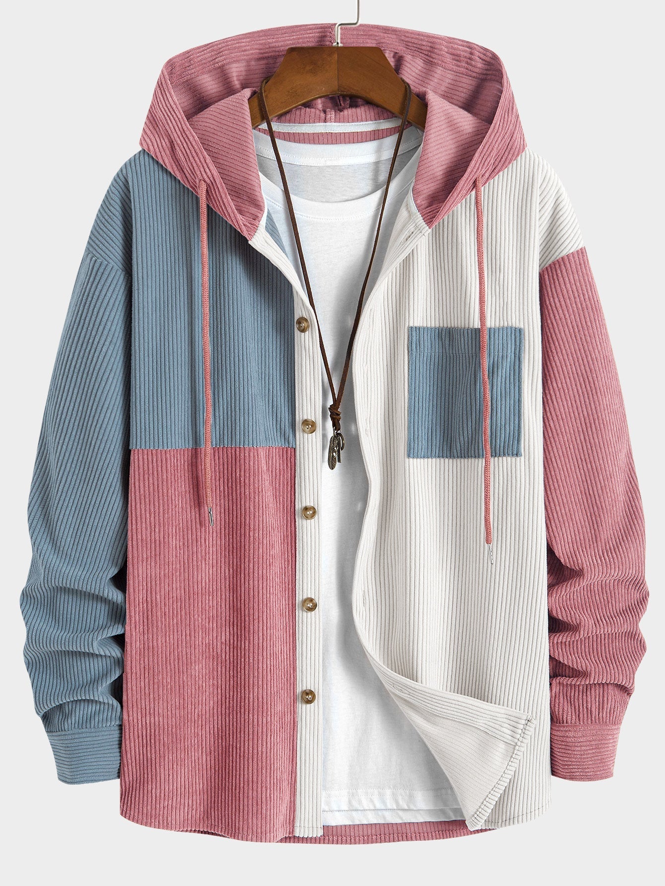 Elonzo - חולצת קורדרוי עם ברדס בצבע אחיד