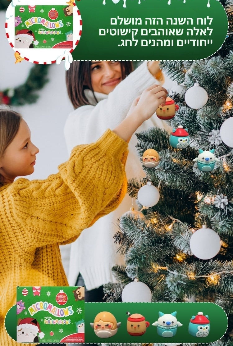 24 בובות פרווה בלעדיות לחג: כל לוח שנה כולל דמויות במהדורה מוגבלת שלא תמצאו בשום מקום אחר. מאיילים ועד אנשי שלג, כל בובה עשויה בפרטים מקסימים. המיניאטורות הבלעדיות הללו מהוות סט אספנים מושלם ומביאות שמחה מתמשכת גם הרבה אחרי תום העונה.