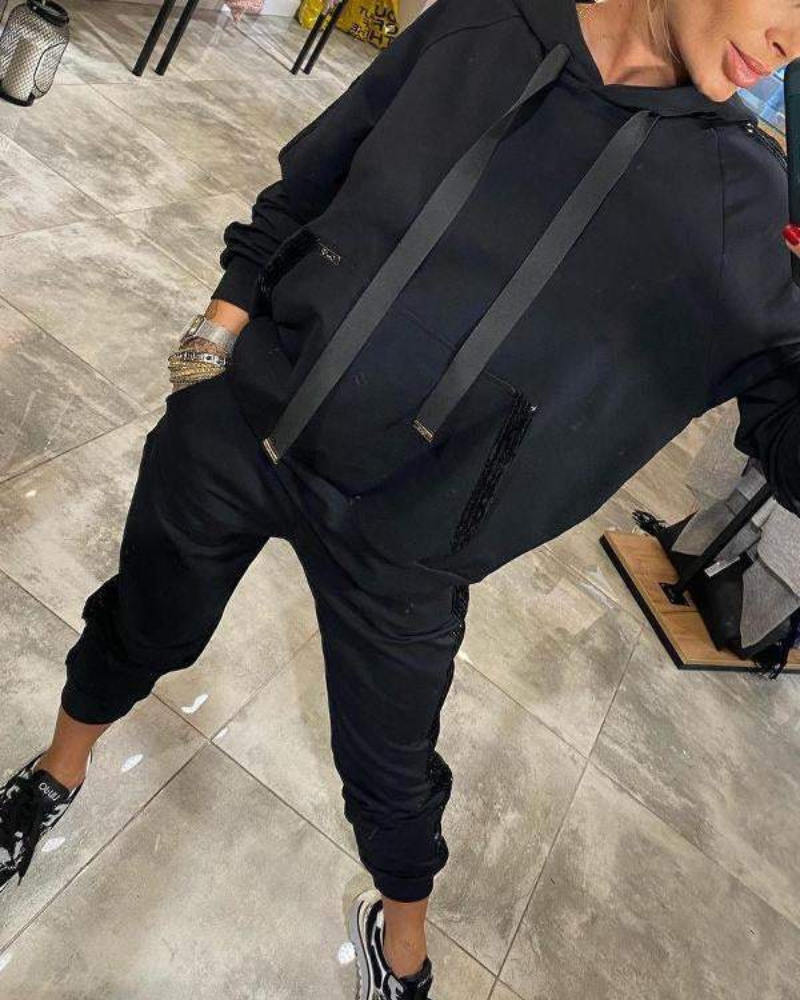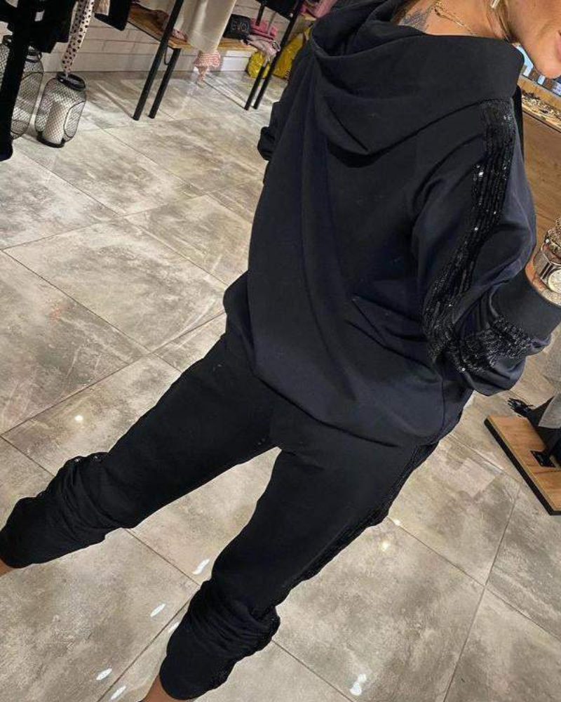 ✅פרטים מסוגננים עם פאייטים: סט גרטטה דו-חלקים משודרג עם פאנלים מנצנצים עם פאייטים לאורך השרוולים והמכנסיים. פרטים אלה לוכדים את האור בצורה יפהפייה, ומוסיפים ברק עדין אך קסום לבגדי היומיום שלך. הוא מאזן בצורה מושלמת בין נוחות קז'ואלית לבין נגיעה של זוהר, מה שהופך אותו לאידיאלי הן למנוחה והן ליציאה.