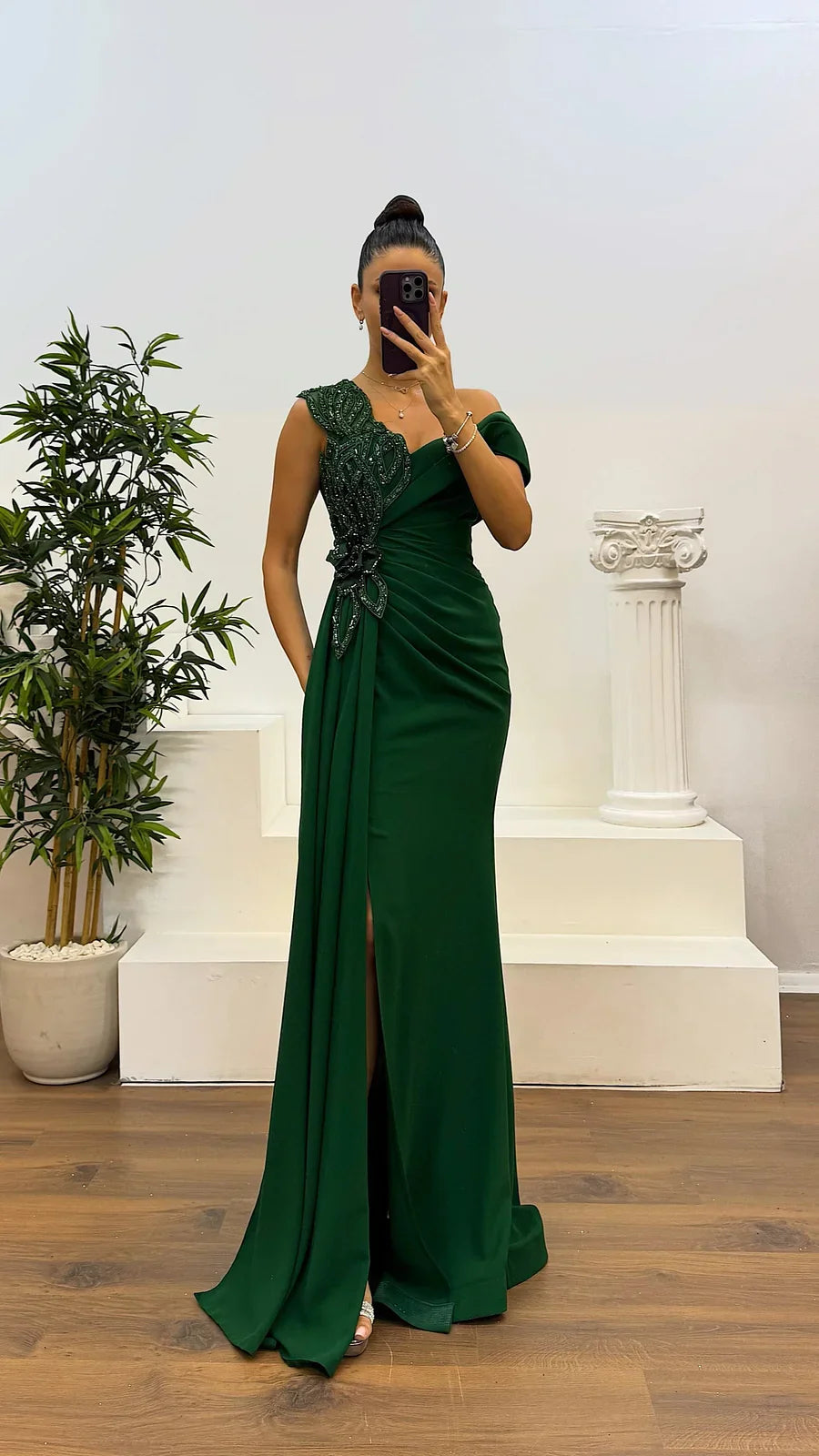 ✅אלגנטיות עם כתף אחת: השמלה מתהדרת בעיצוב מדהים עם כתף אחת, המוסיף מגע מעודן ואלגנטי לתלבושת הערב שלך. הסגנון הא-סימטרי מדגיש את קו המחשוף שלך בצורה יפהפייה, תוך יצירת איזון מושלם בין תחכום וקסם. השמלה מתאימה לאירועים חגיגיים, חתונות וארוחות ערב רשמיות.