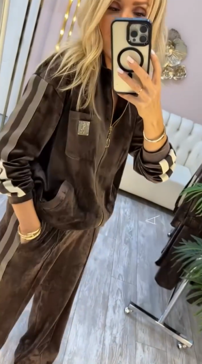 ✅אפקט פסים: הפסים הבולטים לאורך השרוולים מעניקים לסט מראה ספורטיבי ונקי. הם מושכים את העין לאורך הזרועות ויוצרים אפקט חד ומאוזן. תוספת קטנה זו מוסיפה אופי תוך שמירה על נוחות הלבישה. את מקבלת מראה בולט מבלי להרגיש מוגזמת.