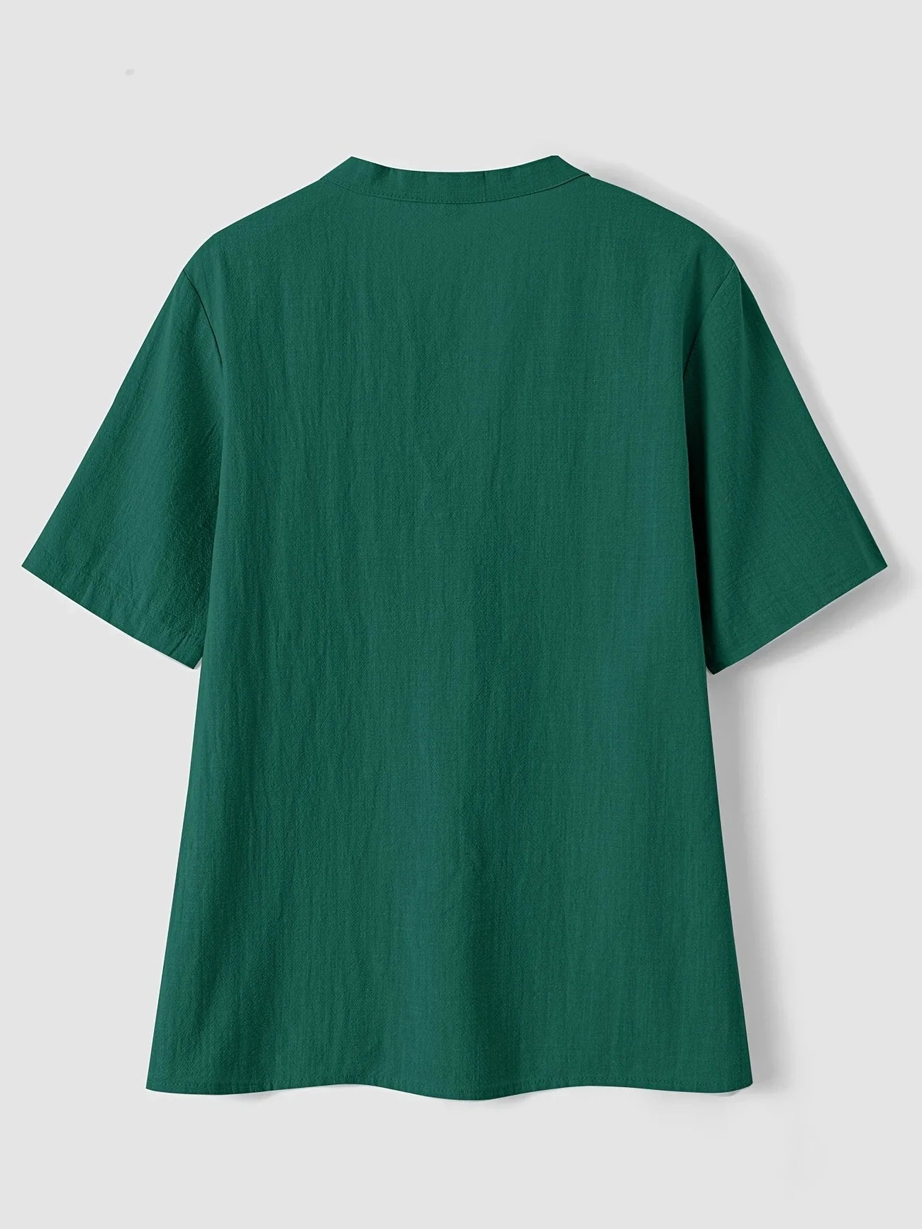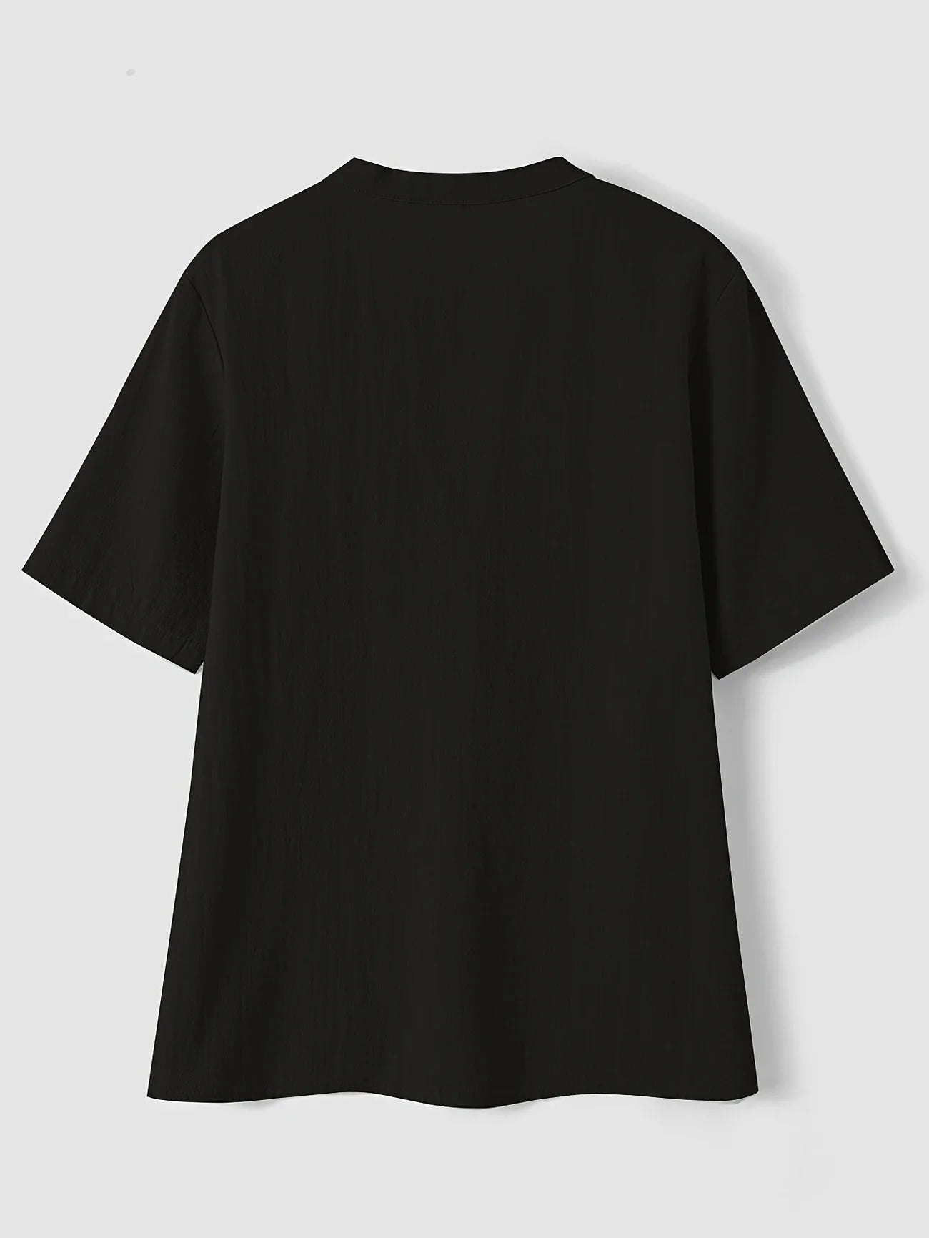 ✅שרוולים קצרים ונוחים: השרוולים הקצרים מעניקים תחושה נינוחה ובלתי מחייבת, תוך שהם מציעים חופש תנועה וכיסוי נהדר. הם מעט משופעים ליצירת גזרה מחמיאה המתאימה לכל צורות הזרועות. השרוולים האלה, האידיאליים לימים חמים או לשילוב עם קרדיגנים וז'קטים, הופכים את החולצה לרב-תכליתית לכל עונות השנה.