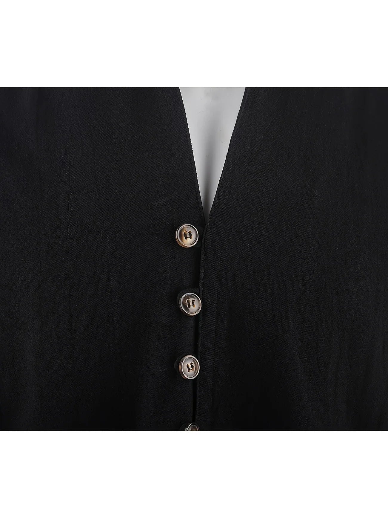 כפתורים מחוזקים שלא נפתחים: כל כפתור נתפר בקפידה כדי לעמוד בשימוש יומיומי וכביסות תכופות. הם נפתחים ונסגרים בקלות ונשארים במקומם לאורך כל היום. סידורם המדויק מוסיף סימטריה שמחמיאה לגזרה.